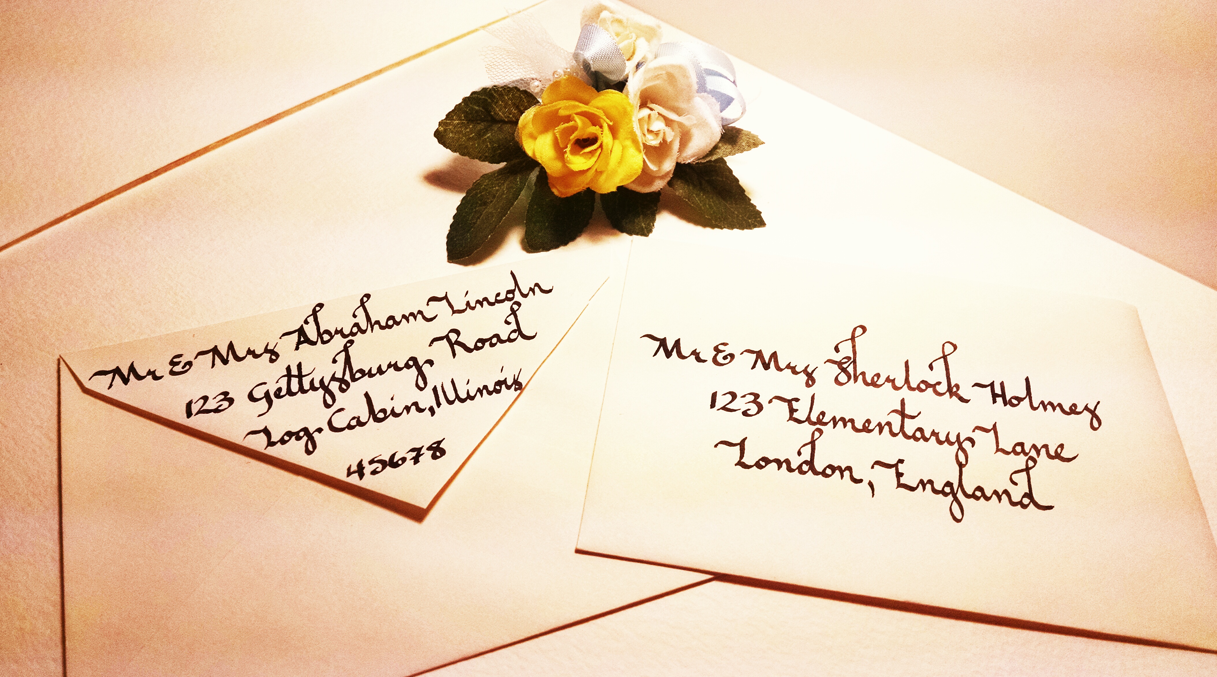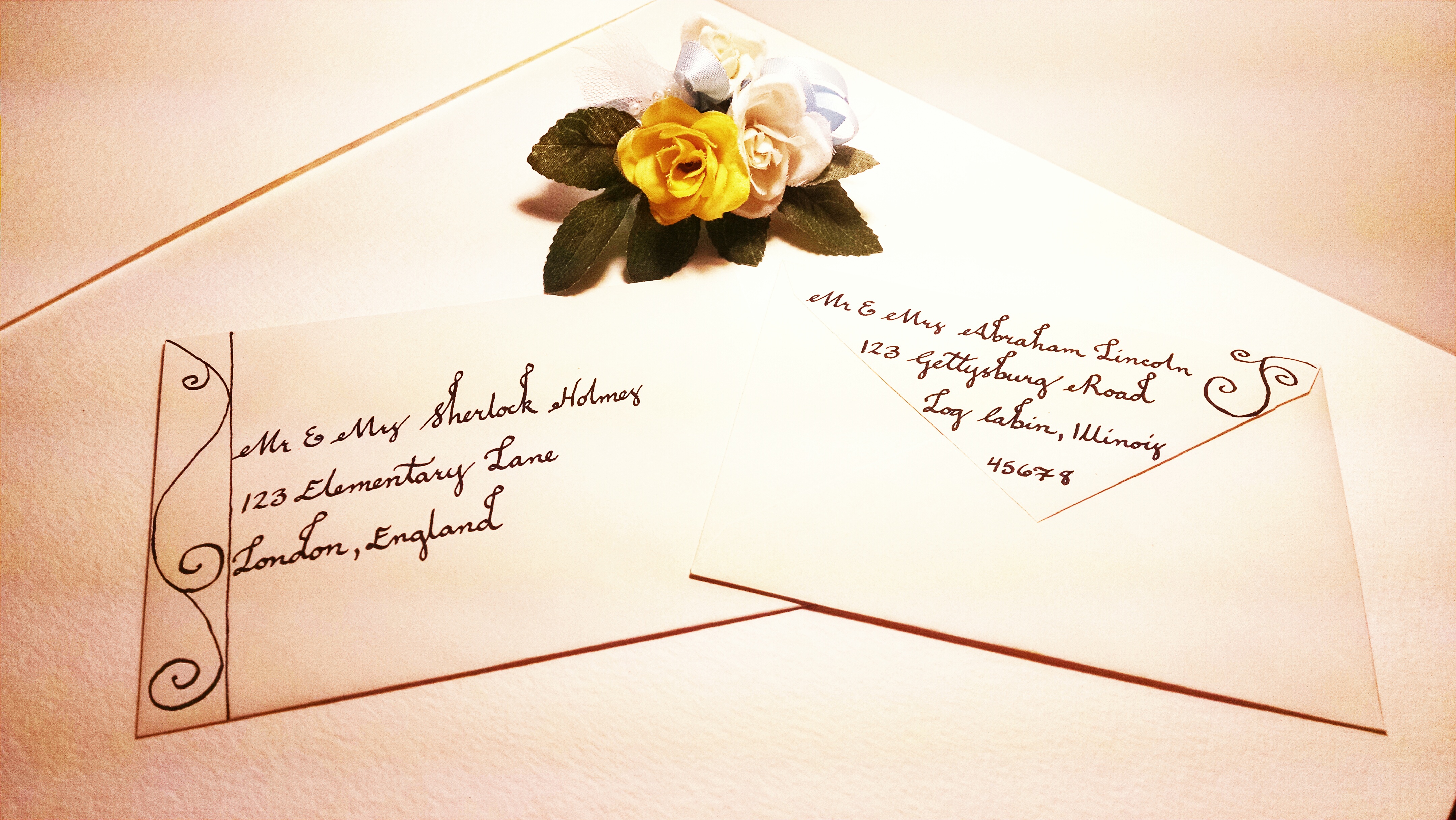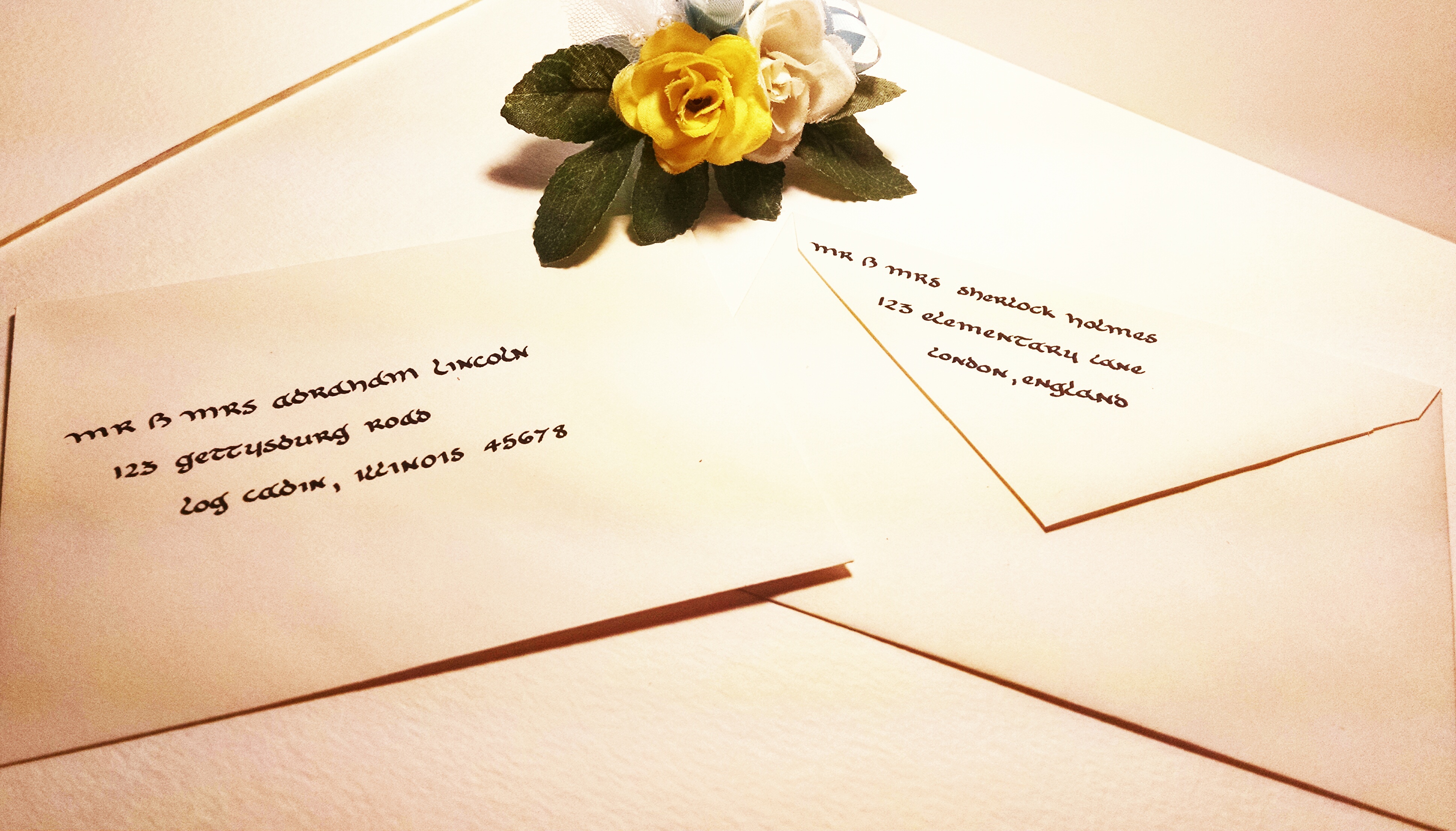 These are some of her hand crafted calligraphy options. We’re working on good presentation photos but these ones we like quite a lot.