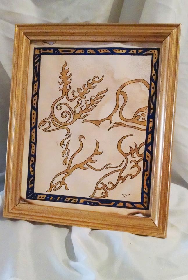 Oh my, this was a lot of work. He drew the design, I hand painted it (on coffee-stained paper). I love it though.