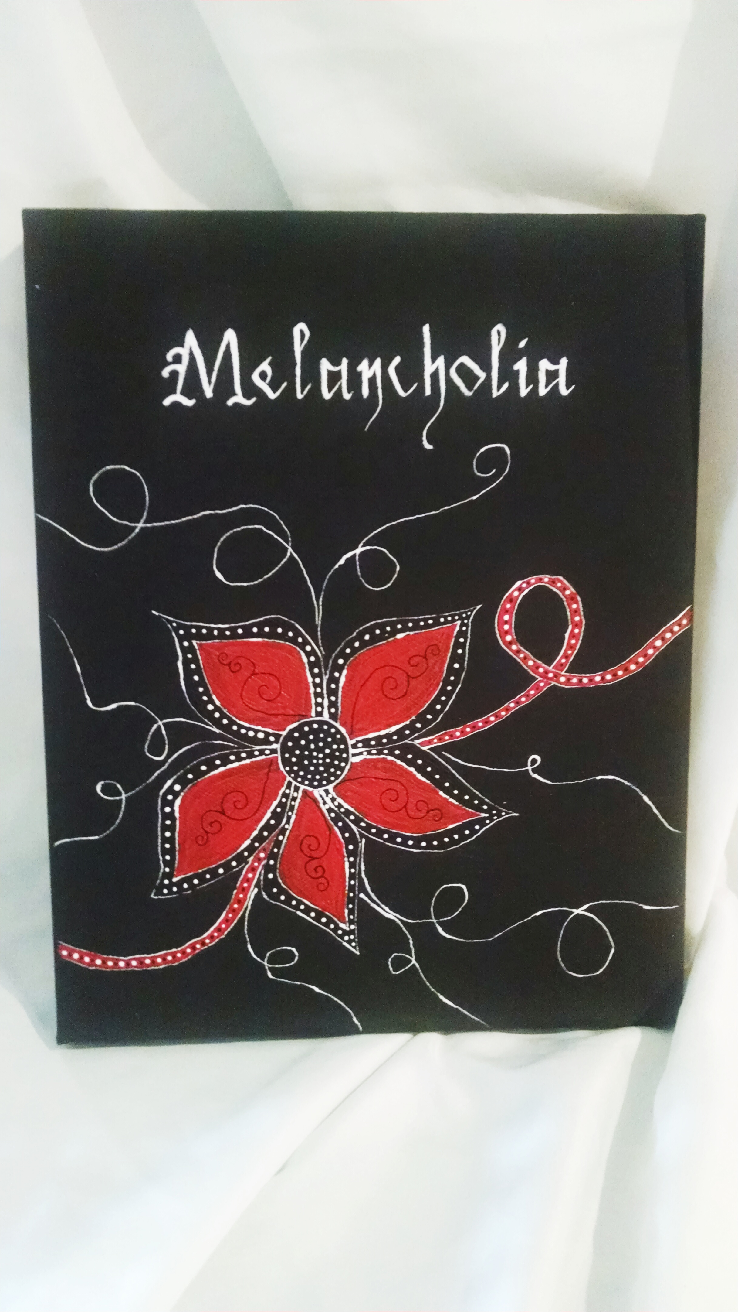 Anyway, I was in a bad mood. I wanted to create and I needed angry rock music. I had picked up a black canvas and Thousand Foot Krutch is on Spotify so my atmosphere was perfect and I even had a word-melancholia. I paired it with a flower because even in the midst of despair there is beauty, there is hope. His death left irreparable damage but I also know he’s with Jesus and that I’ll see him again. Of course I had to be dramatic with the colors to suit the black (color and mood). Blood red FTW.