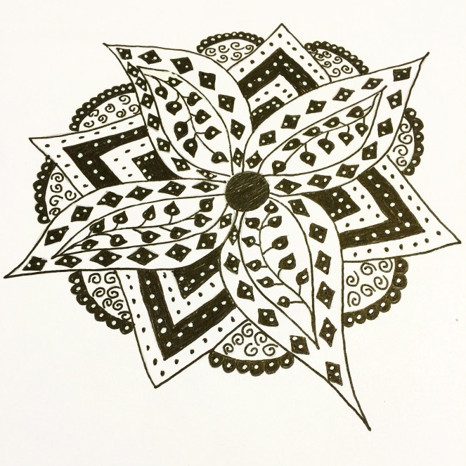 So while I don’t find this style relaxing I do enjoy drawing this way. I like seeing how little things like dots or diamonds can really make a design amazing and I think it’ll help my overall style improve.