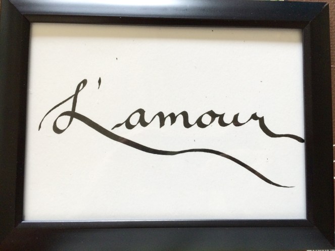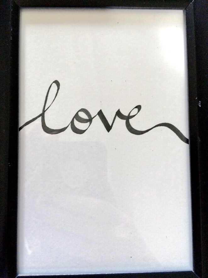 I’m doing a total of twelve pieces for my brother’s wedding, featuring quotes and the word “love” in different languages. They decided on a relaxed and flowy font. I was a bit nervous about the one in Arabic but I think it turned out ok: