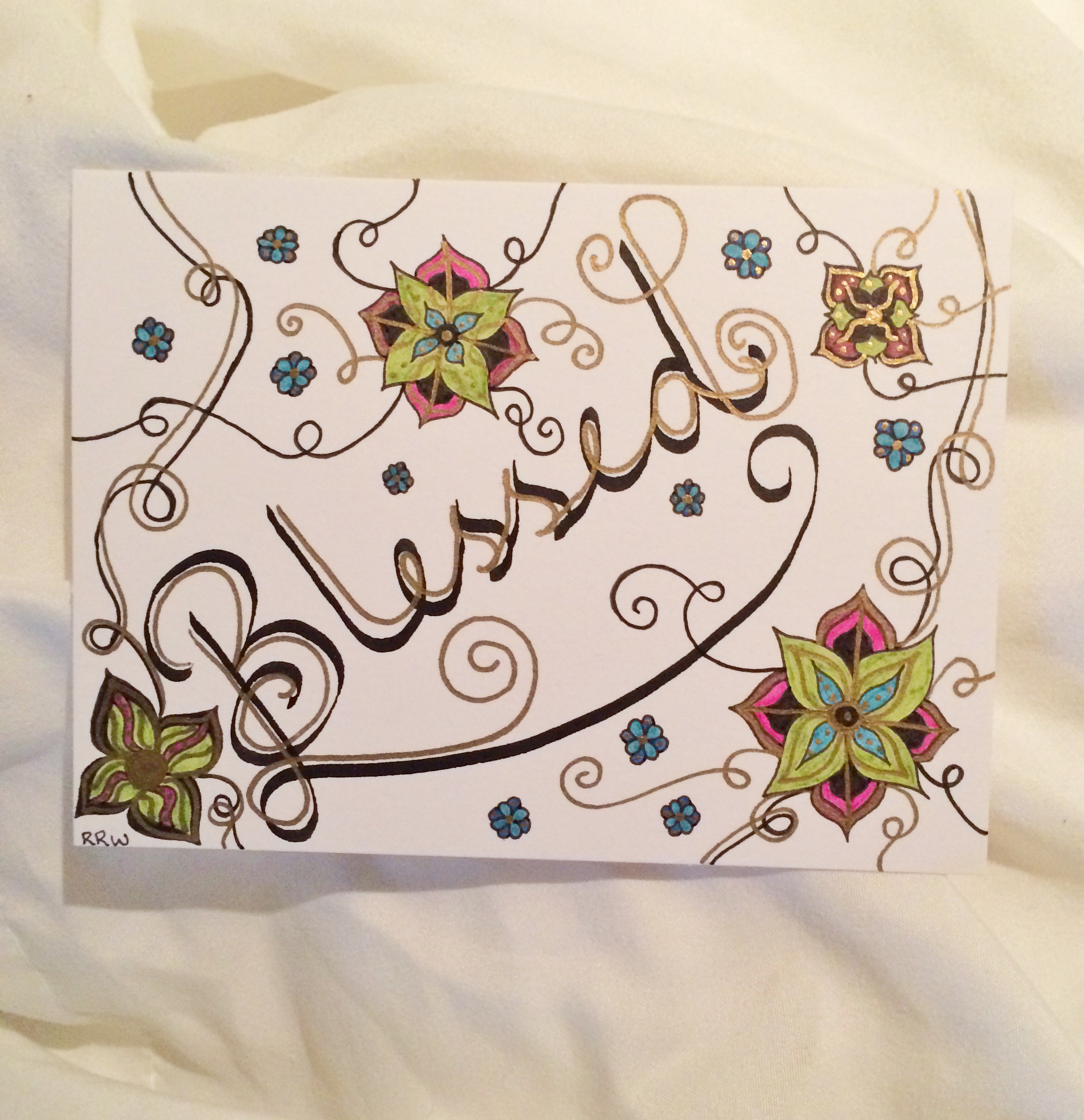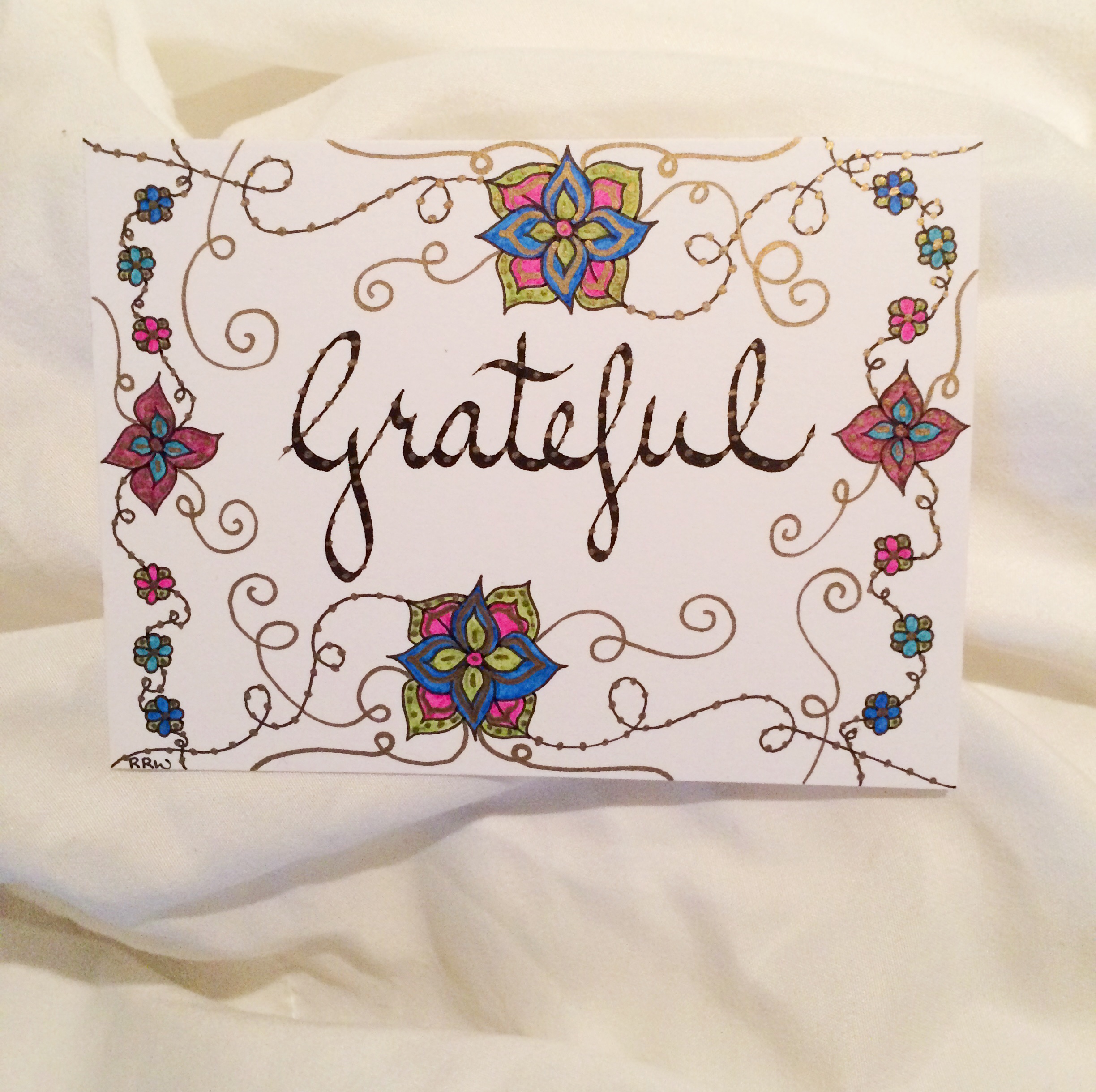 I was recently commissioned to design three greeting cards based on my “Be Brave” piece (you can commission something too by visiting my etsy shop or emailing me at wordsandwares@gmail.com, I’m fine with either). I had a lot of fun doing these and the calligraphy on “Grateful” is some of my best yet in terms of balance.