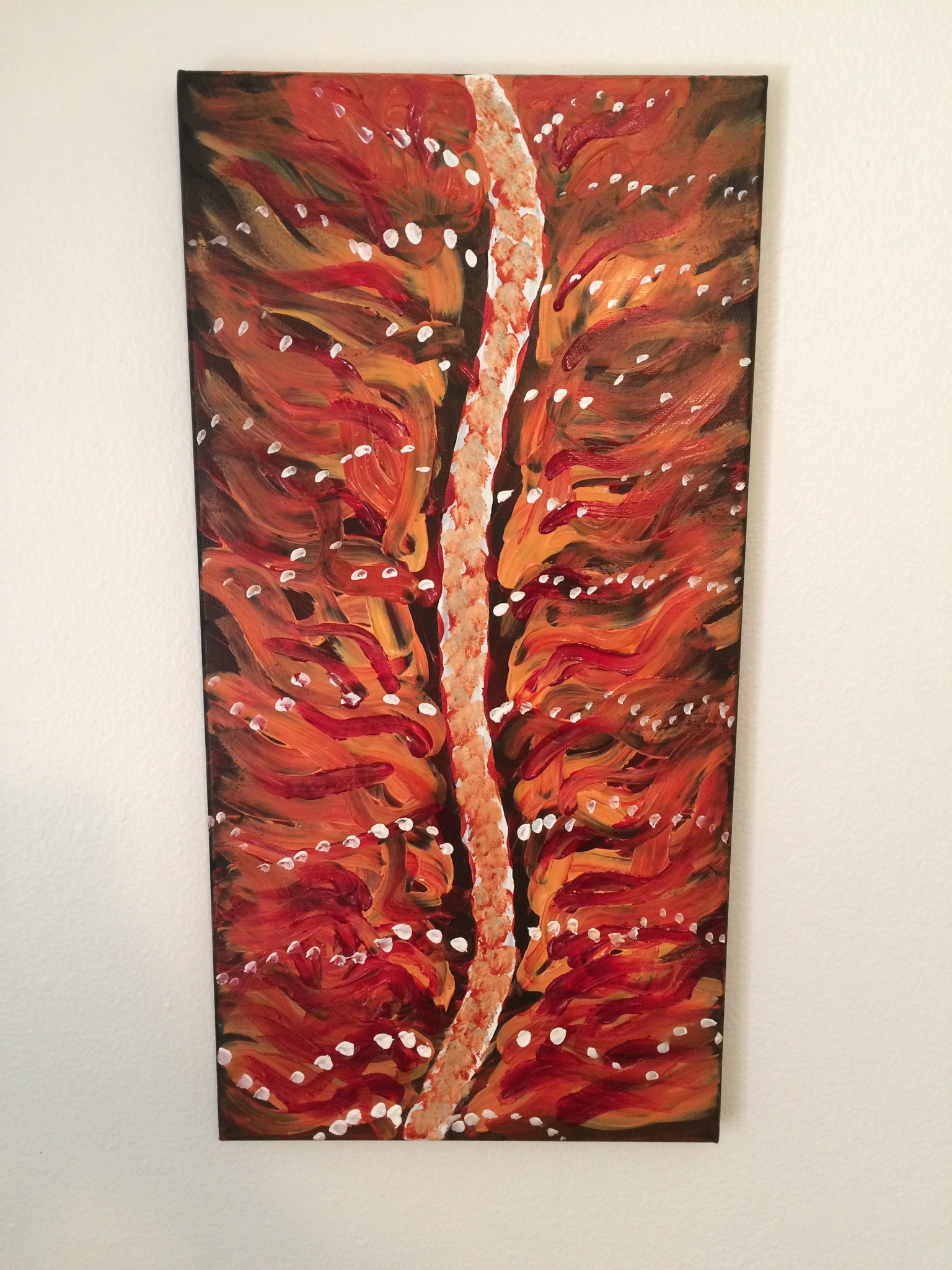 See? Much better. I call it “Dance of the Orange”. I think it looks like a flower. One of my brothers said it looked like a fiery centipede. I mainly was going for the color combination AND following what was in my head.