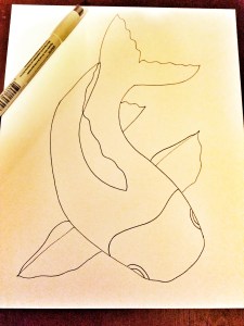 When I’m drawing something I haven’t attempted before I’ll pick a few images off ye olde Google and come up with my basic outline (I try very hard not to do any outright copying but to make each drawing my own). My koi is a bit tubby but I was really pleased with it.