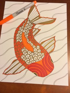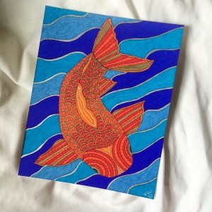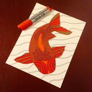 As I was typing this up I decided the name of this piece would be “Mr. Koi”. I’m not sure why the fish is a “he”, nor why he’s so distinguished, but Mr. Koi it is. I now have two pieces to go in my “Oceanic Doodles” category; my etsy shop will be re-opening in September. If you absolutely have to have a print right now shoot me an email (wordsandwares@gmail.com) and we’ll make it happen.