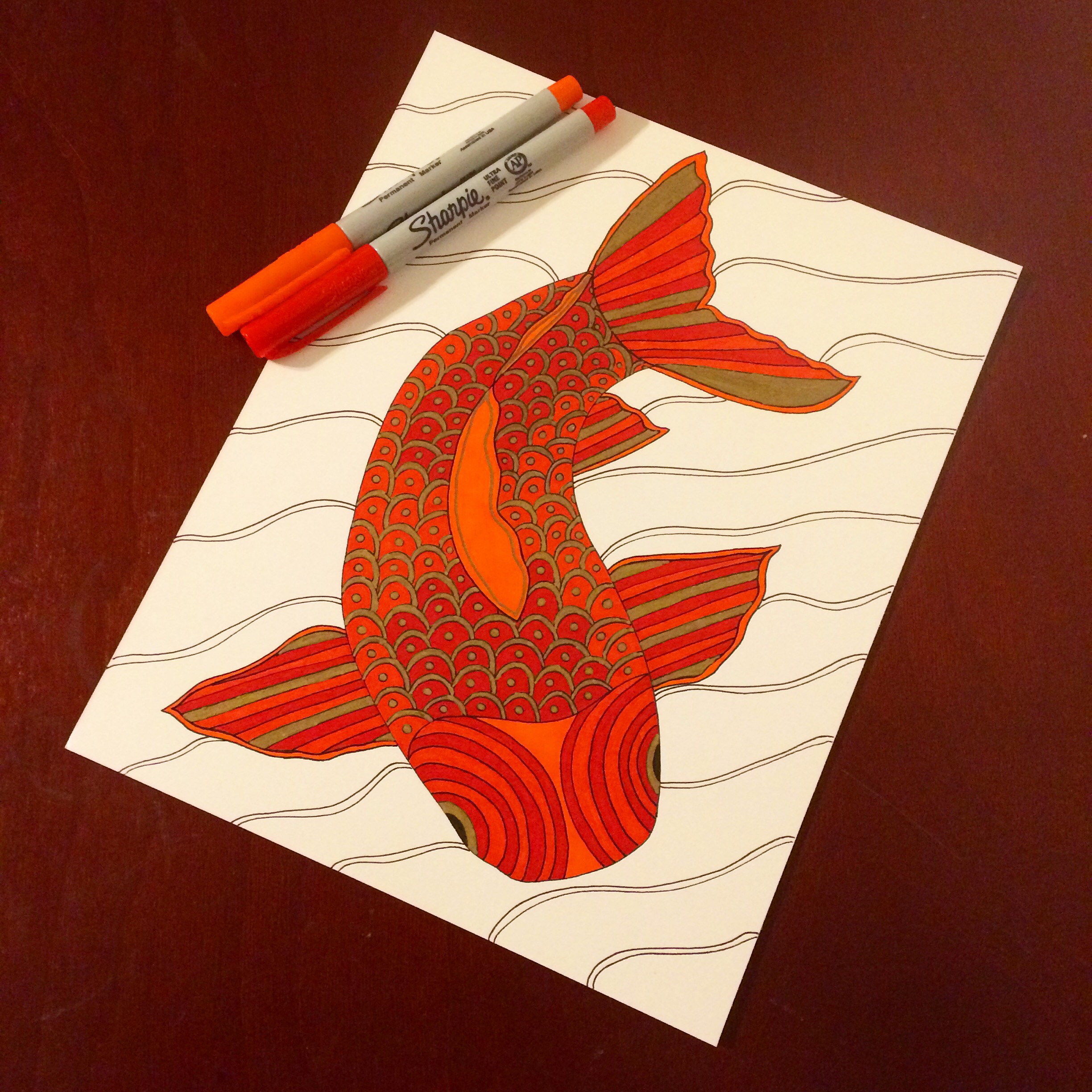 Then I add zendoodle elements. I felt the scale pattern would fit in this instance and kind of drew it like I felt it for the rest of it.