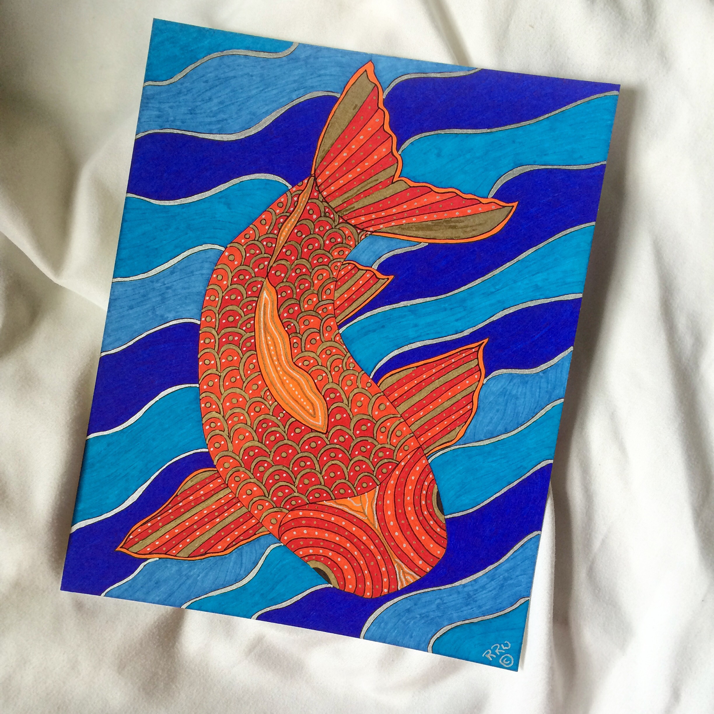 Although I’m not a huge fan of fish (they can be quite lovely to look at but there my association ends) many people who follow my drawings do. So I decided to try a koi fish.