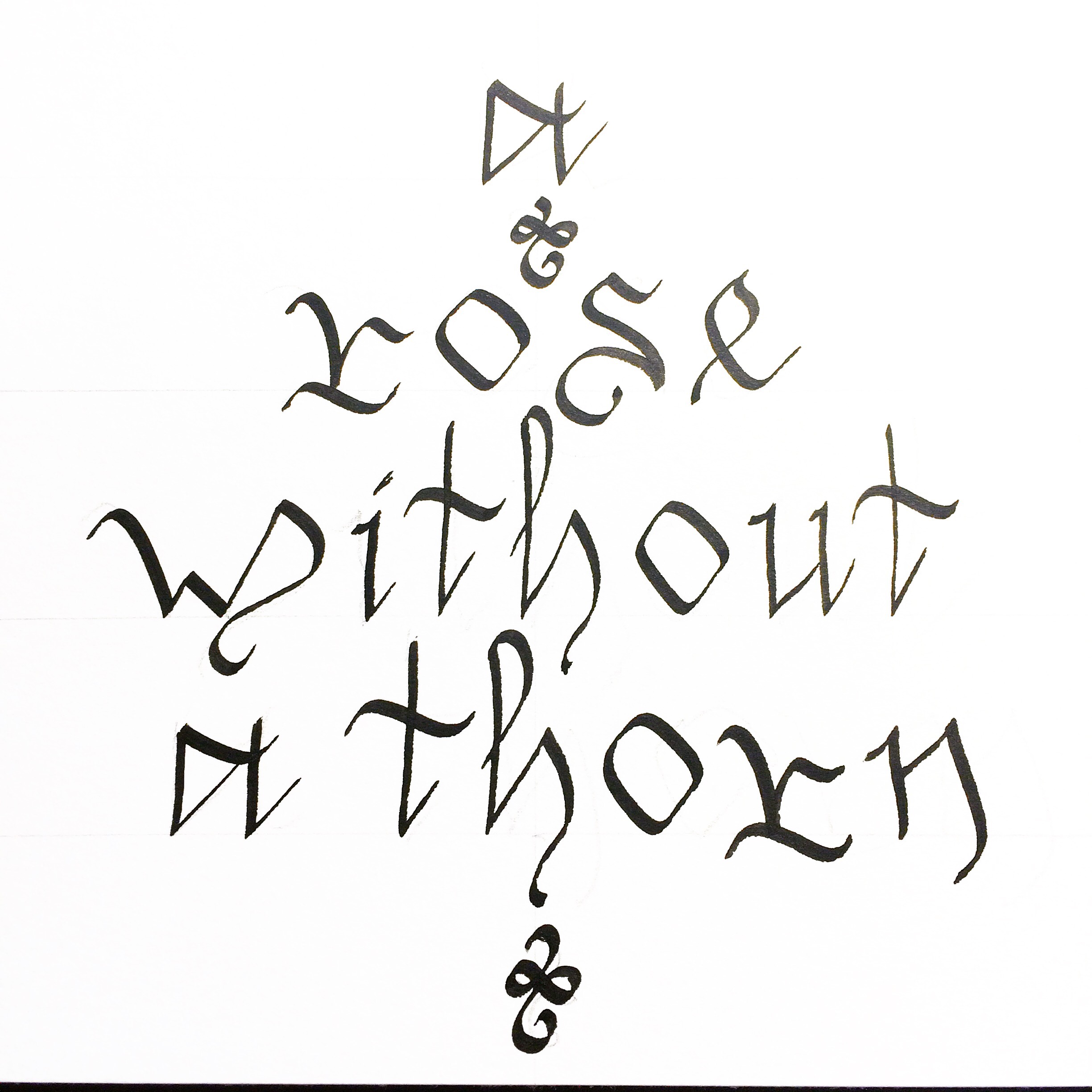 This calligraphy is a compliment to my “Tattoo Rose”. It’s what Henry VIII said of his fifth wife, Katherine Howard, before he found out she was not so virginal and cut off her head. I find it amusing (I have a weird sense of humor, I know).