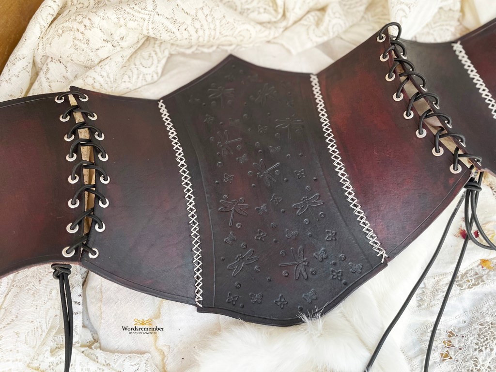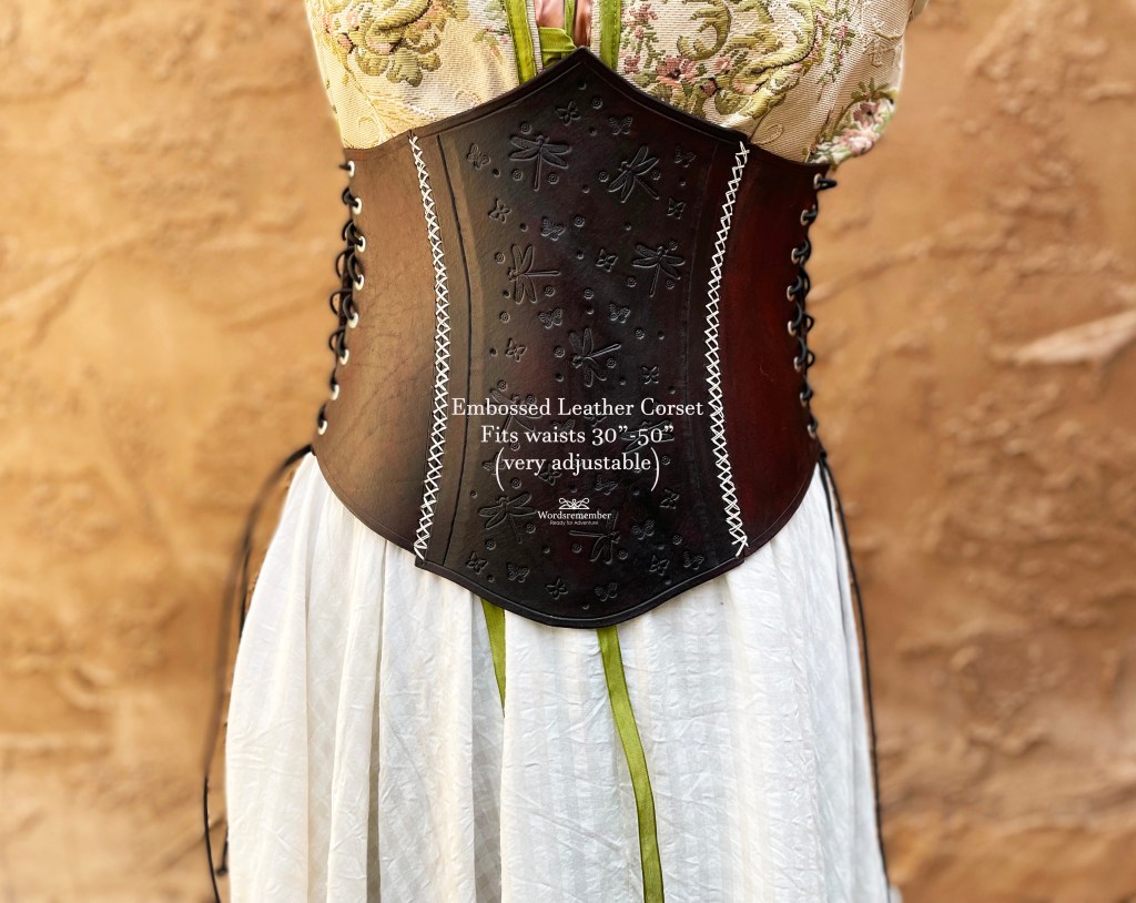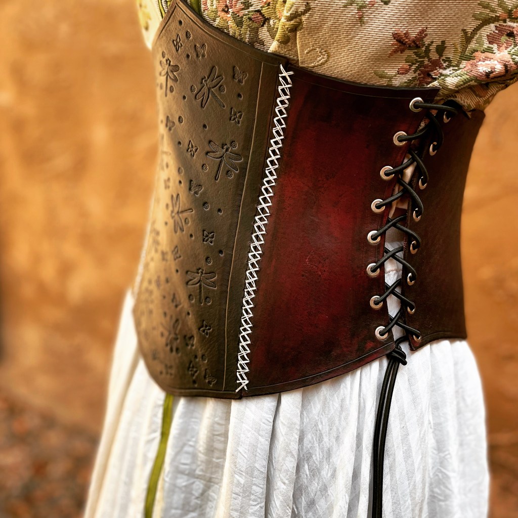This month one of my big projects was working on this corset. I have some new press stamps that I want to use on the next one but for this I stuck to my smaller dragonfly, butterfly, and flower stamps.
