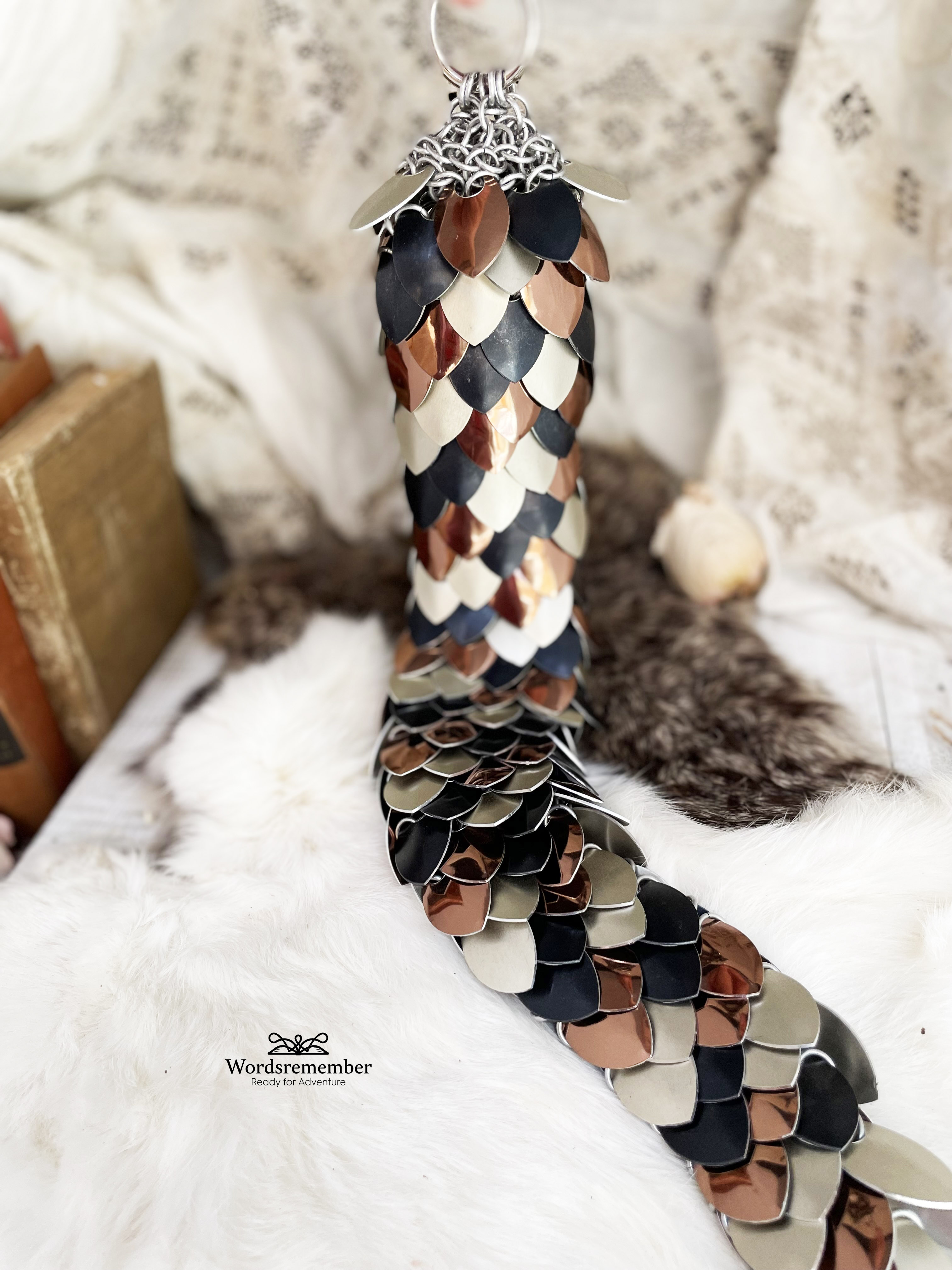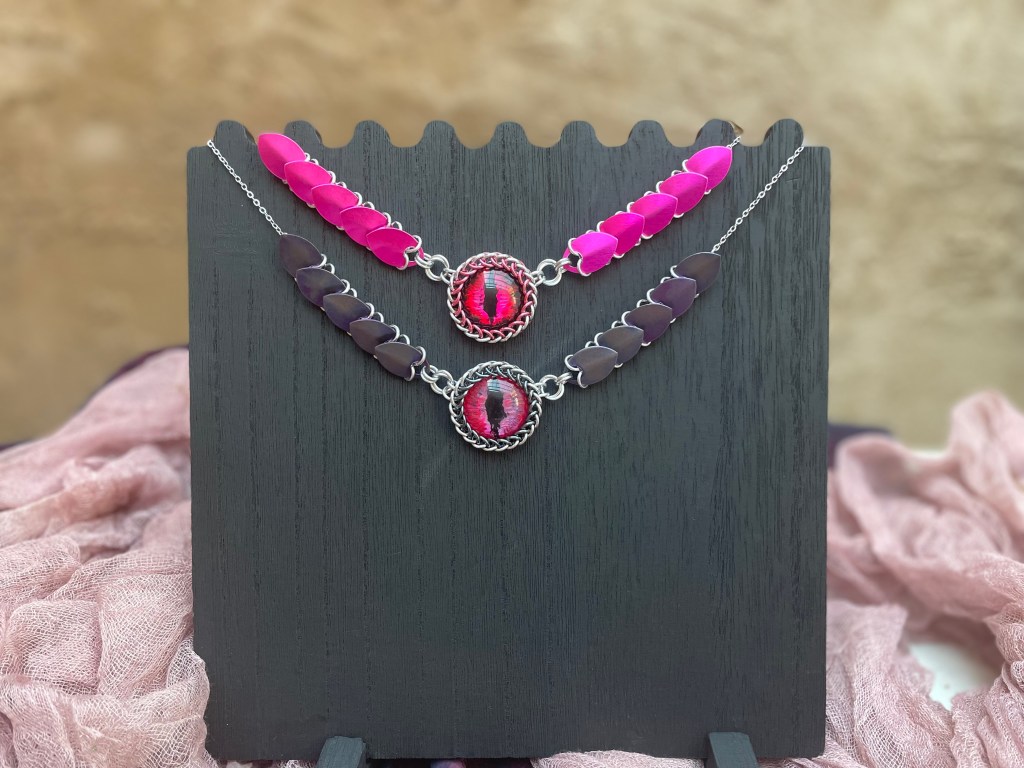 I’ve been doing more chainmail since I can do that while on the couch or bed surrounded by my comfy pillows. I have a lot of fun with scales, I adore all things that look like dragonscales.