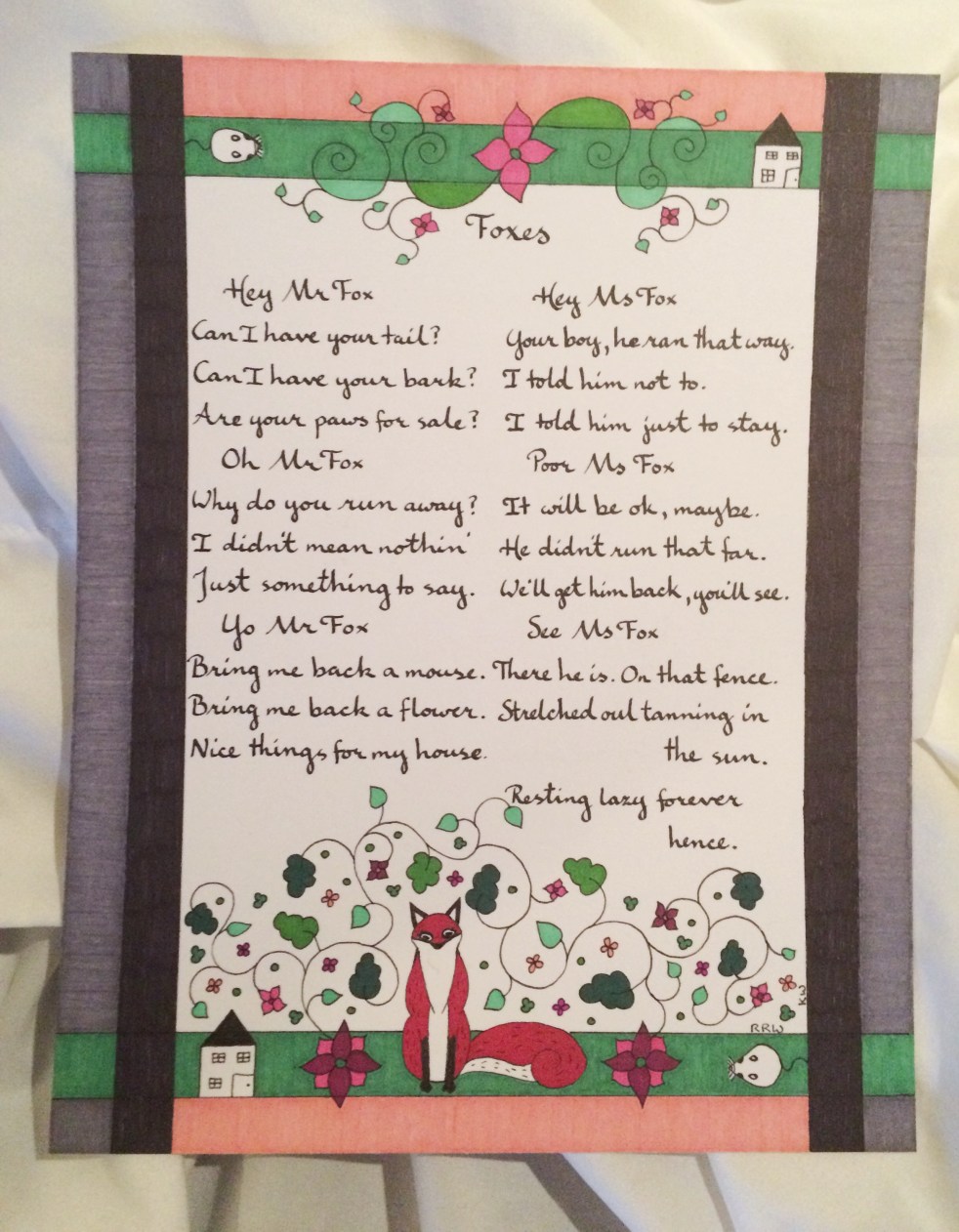 On Tuesday Himself posted the poem "Foxes". I had asked him to write a children's story for me so I could illuminate it. I should've known better, he adores the original Brothers Grimm stories. Still, this poem was rather cheery so I went ahead with the project. My fox. His eyes look weird. A house!… Continue reading An Illumination of “Foxes”